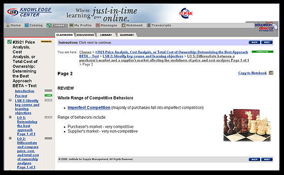 From 2001-2008 I served as a LMS Administrator for ISM’s Knowledge Center at the Institute for Supply Management™. The Knowledge Center offered over 120 online education topics and a variety of program types including general business, career development or supply management. The task of populating the Knowledge Center involved created hundreds of educational flash animations and games for over 25 courses that were offered to professionals in the supply management industry.